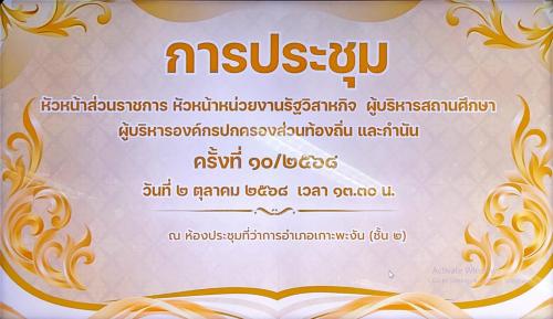 วันที่ 2 ตุลาคม 2568 เวลา 13.30 น. ณ ห้องประชุมที่ว่าการอำเภอเกาะพะงัน (ชั้น 2) ตำบลเกาะพะงัน อำเภอเกาะพะงัน จังหวัดสุราษฎร์ธานี